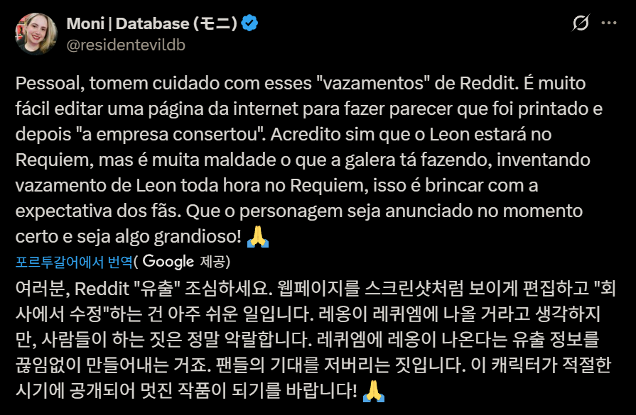 모니는 "친구 여러분, 레딧에서 소위 '유출'이라고 불리는 것들을 조심하세요.