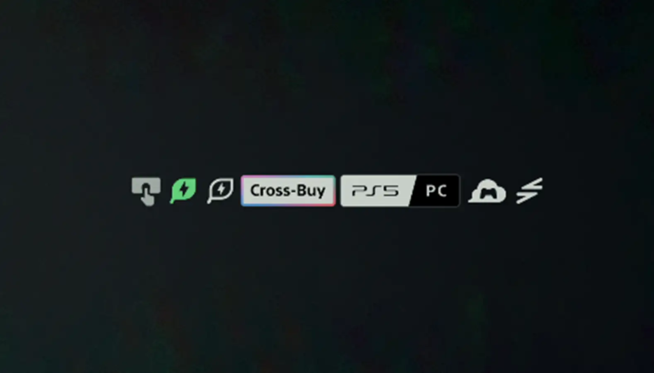 이 심볼들은 "에코 모드", "PS5/PC 게임", 그리고 가장 주목할 만한 "크로스 플랫폼 구매"라는 세 가지 핵심 개념을 명확하게 나타냅니다.