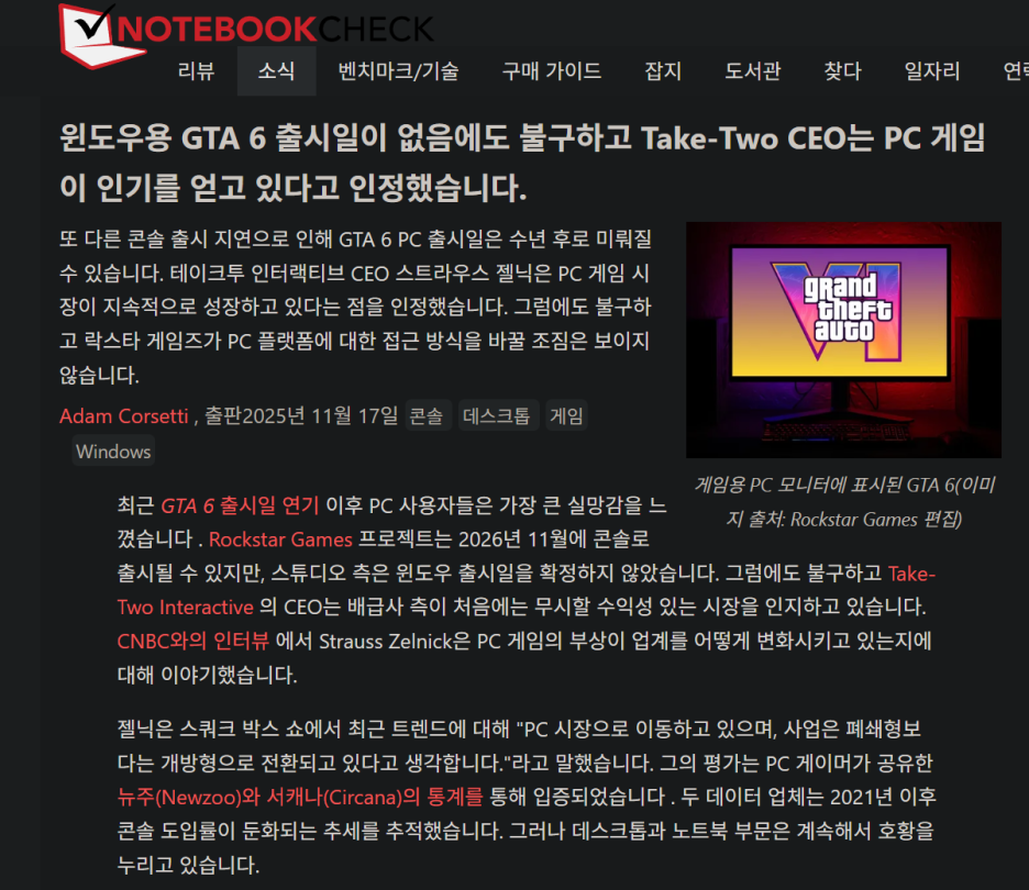 테이크투의 CEO인 스트라우스 젤닉은 게임 콘솔은 사라지지 않을 것이지만, 게임은 PC로 옮겨가고 있으며, 게임 산업은 폐쇄적인 시스템에서 보다 개방적인 시스템으로 옮겨가고 있다고 말했습니다.