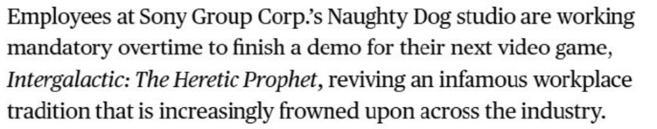 작년에 일부 팀이 첫 번째 트레일러 제작을 위해 초과 근무를 한 적은 있지만, 스튜디오 전체에 의무적인 초과 근무 정책을 시행한 것은 최근 몇 년 만에 처음이라고 합니다.