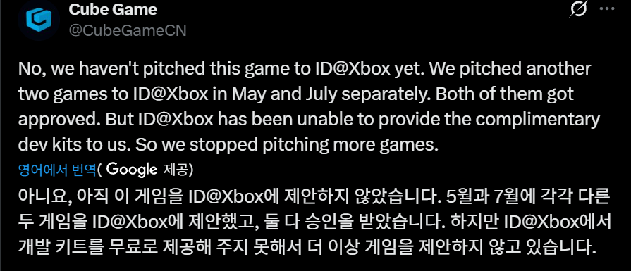 공식 발표에 따르면, 큐브 게임즈는 2025년 초 마이크로소프트의 ID@Xbox 개발자 지원 프로그램에 참여했지만,