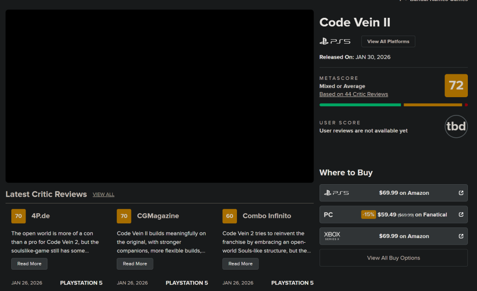 이 게임의 메타크리틱 점수도 공개되었습니다.