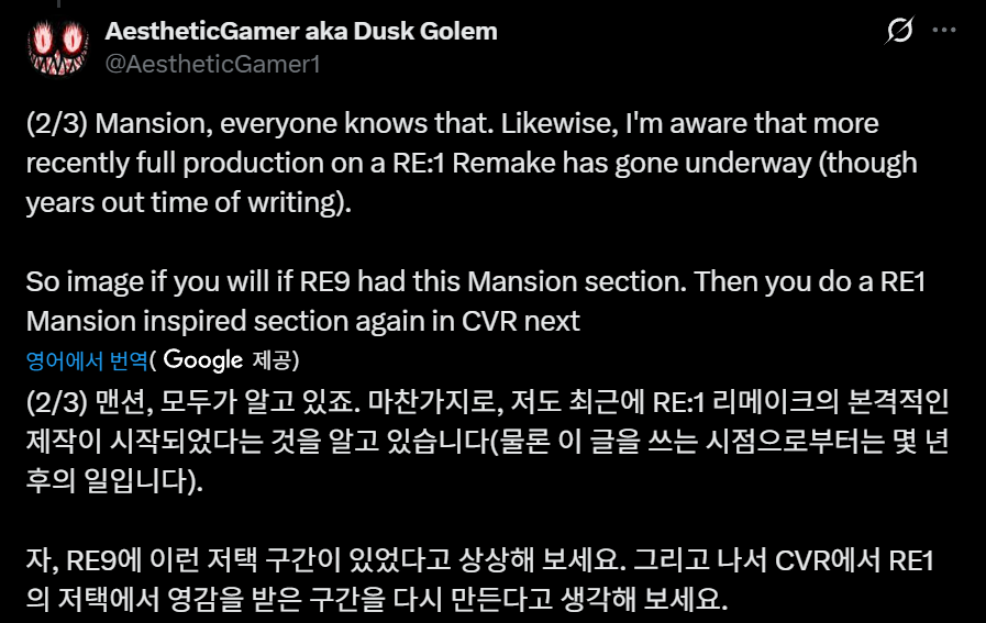 레지던트 이블 5부터 시리즈의 거의 모든 게임에 확장 콘텐츠가 출시되었으니까요."라고 Dusk Golem은 말했습니다.