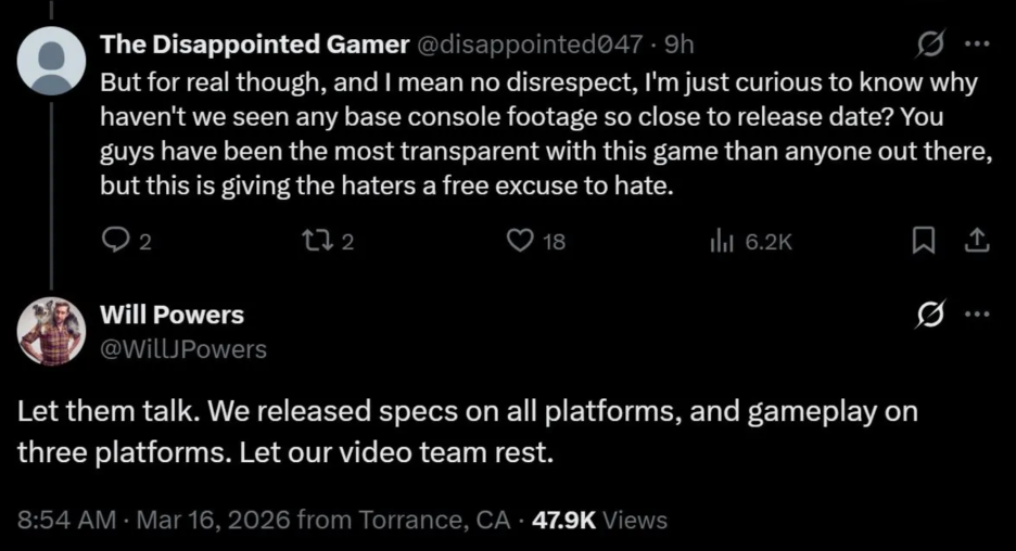 3월 19일 출시를 불과 며칠 앞두고 개발팀이 콘솔 버전에 대해 진정으로 뭔가 조치를 취할 의지가 있는지는 미지수입니다.