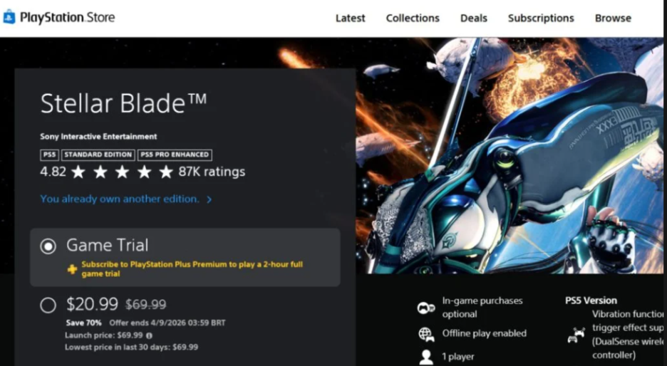 3.해외 언론사들이 PS 스토어에서 동적 가격 책정을 테스트한 결과, "스텔라블레이드"의 가격 차이가 거의 두 배에 달했습니다!