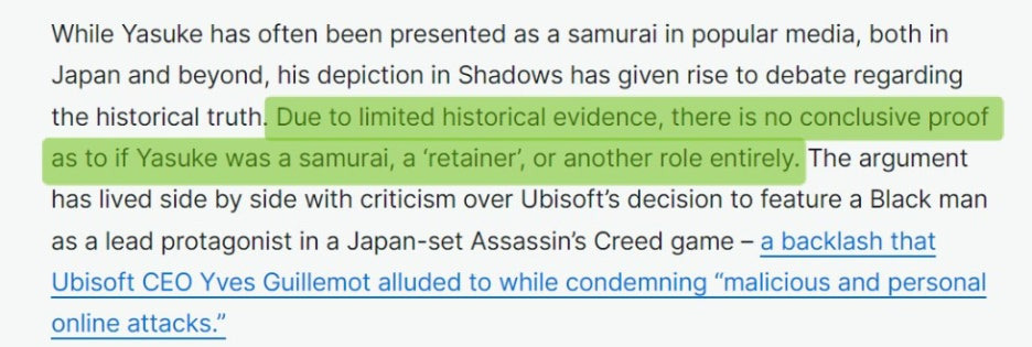 4.Ubisoft의 "사과" 성명 이후 IGN도 태도를 바꾸어 야스케는 사무라이가 아니라고 말했습니다.